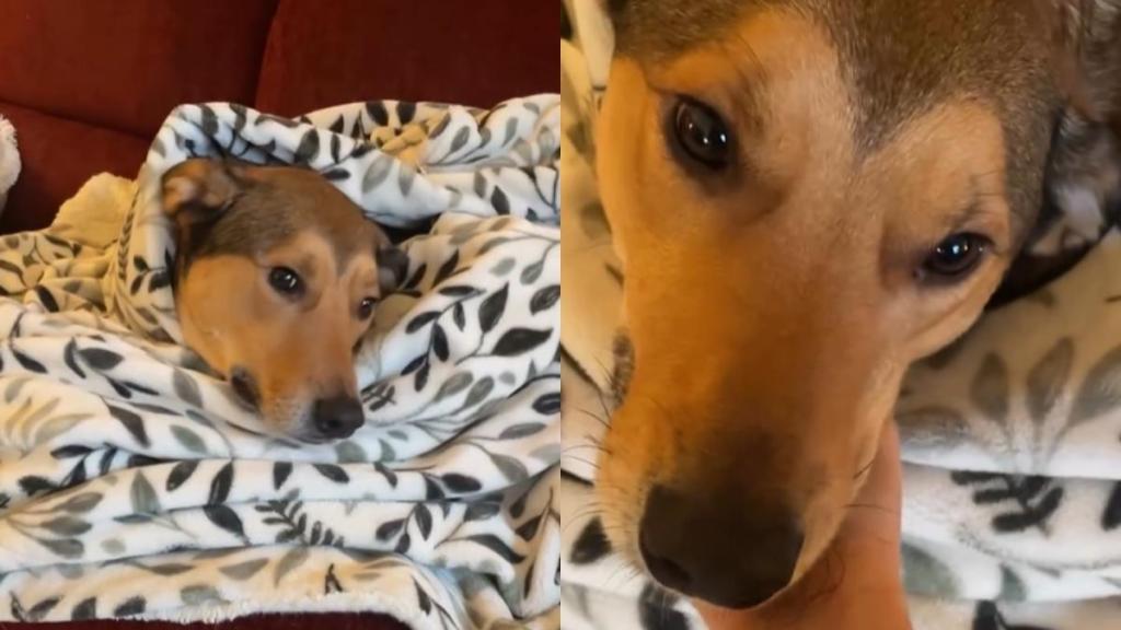 Dog mom Meagan Shelton shared the video on her profile, @meagshelton, offering a glimpse into her daily life with her rescue pup, Marty. In the video, Marty is seen lounging comfortably on the couch, wrapped snugly in a blanket and clearly relaxed. According to Shelton’s onscreen text, this calm setting is exactly when Marty decides it’s time for some affection.