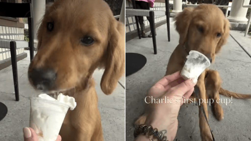Owner captures Golden Retriever puppy’s first pup cup experience in cute video