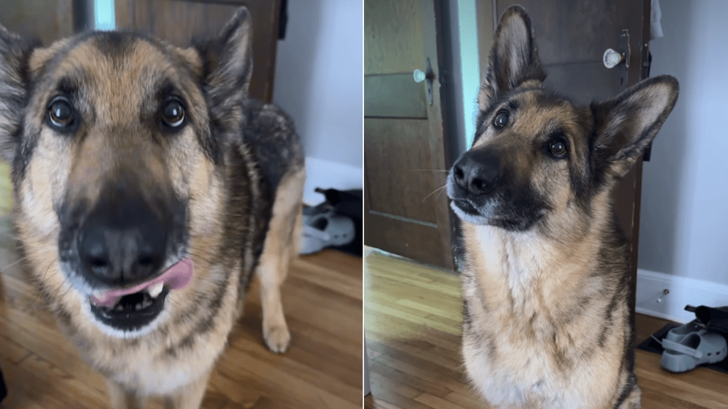 This is a scene many dog owners know all too well: as dinnertime approaches, pets realize that a little extra effort can get them their meal early. In one charming video, a clever German Shepherd has mastered the trick. His strategy is simple and effective. He whines cutely to try to get his dinner early. Even when his dad initially declines, the determined pup eventually wins and gets his meal.